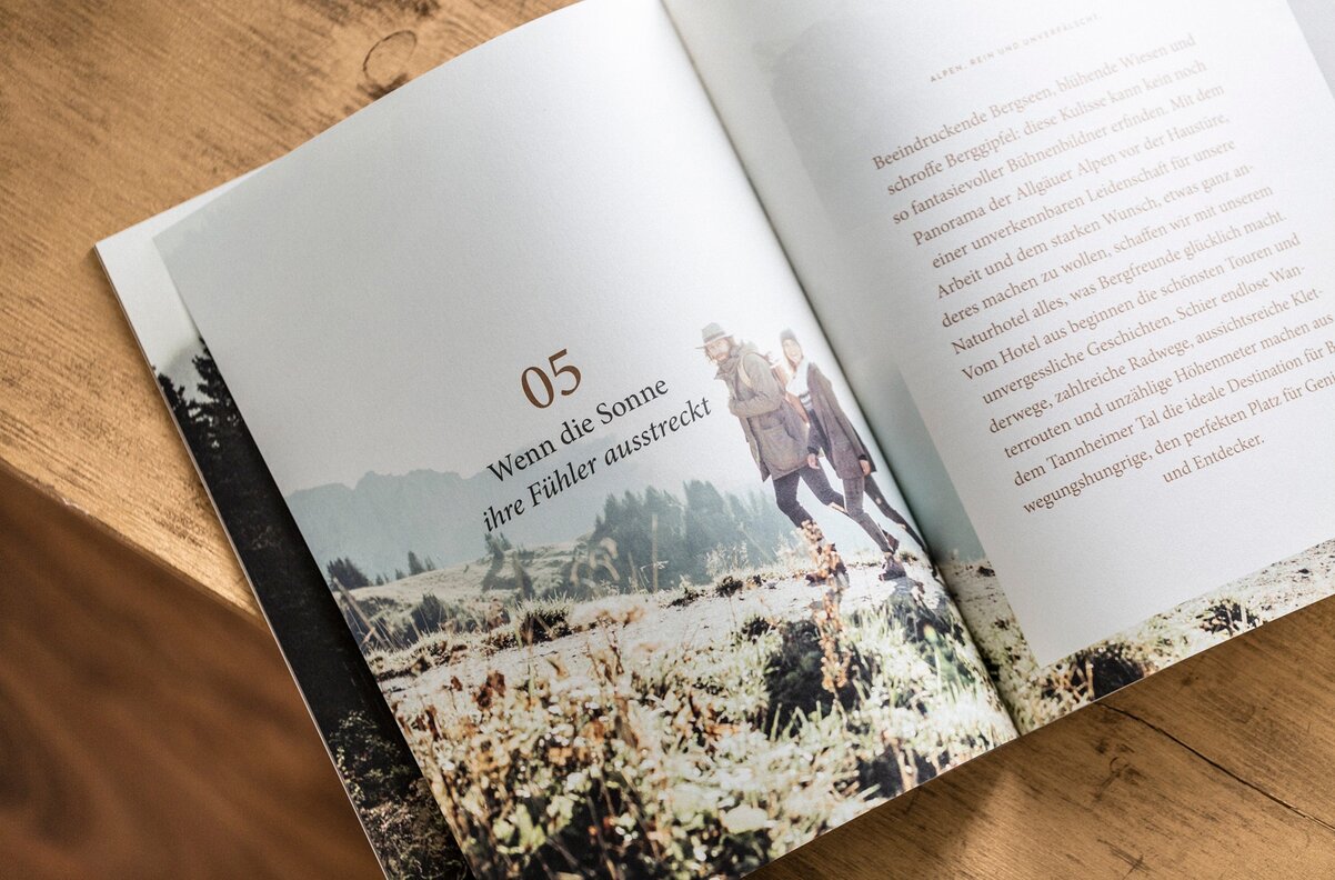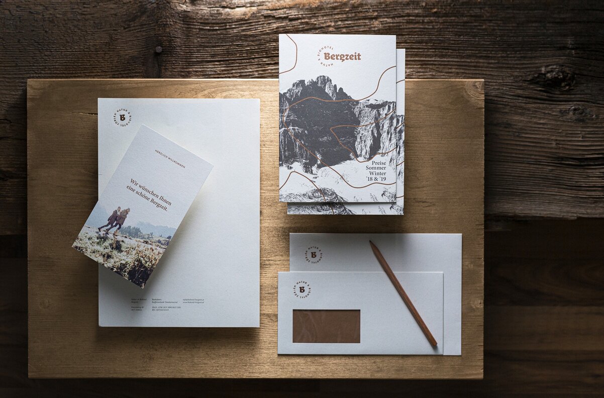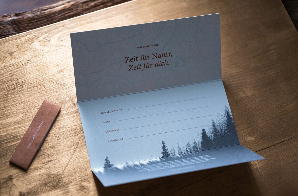 When closeness to nature is not just part of a hotel’s concept but should be felt from the very first moment in the branding, that’s where the real magic begins. For the Biohotel Bergzeit, we were able to translate exactly these values into colours, materials, and forms that feel like a walk through the Tannheimer Valley. In the corporate design, we focused on copper accents: warm, grounding, and sophisticated. The valley’s contour lines became a central design element, a subtle reference to the deep connection between people and nature. For the stationery, we chose structured natural paper to reflect the tactile quality of the hotel. Gift vouchers wrapped in copper bands and a multi-year image brochure with open thread binding complete the natural overall impression. The same principle applied to web design, programming, and the photoshoot. The resulting imagery tells stories of mountain dreams, whispers of the forest, and rays of sunlight.