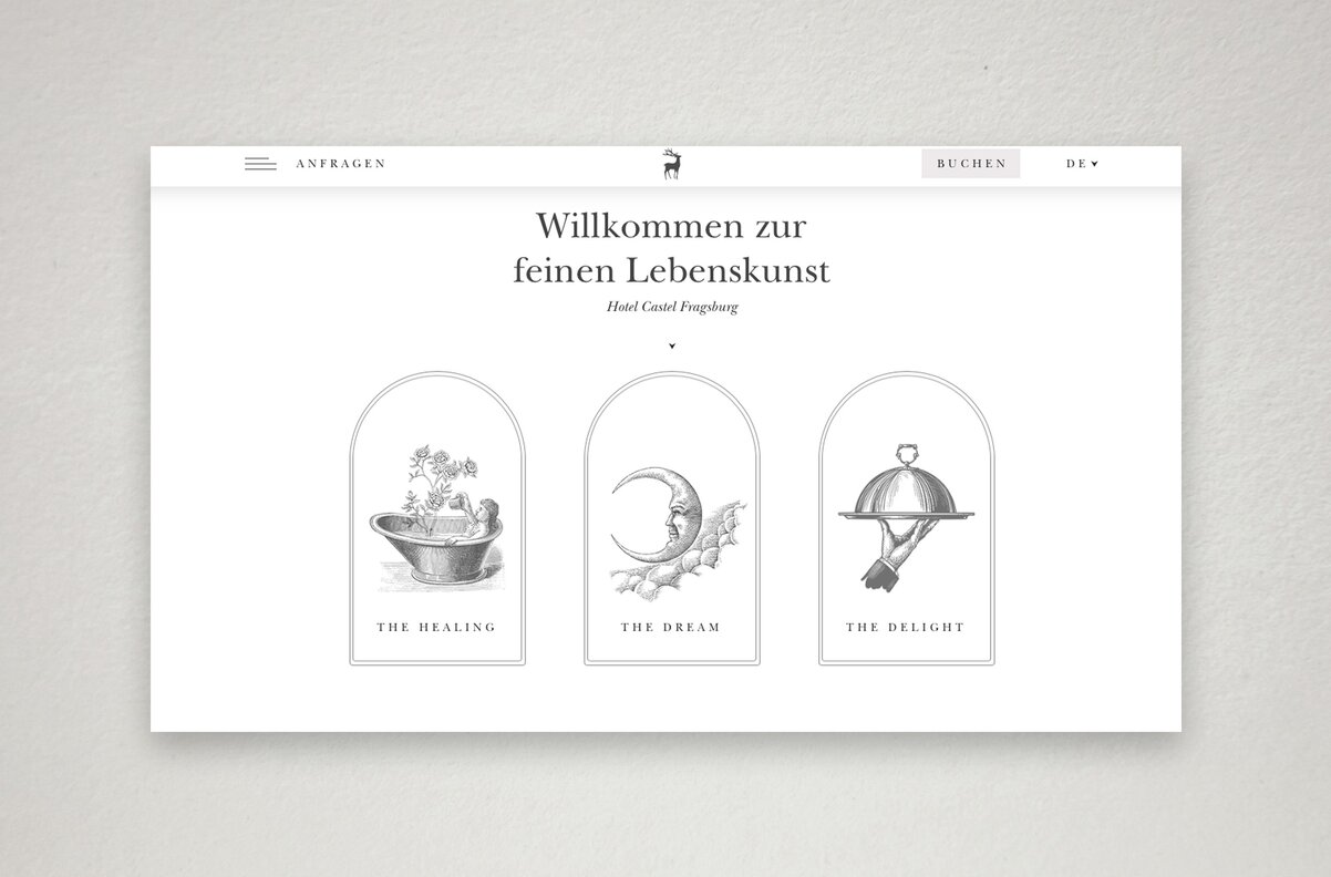 Driving through the gates of this five-star hotel feels like entering a fairytale. We wanted to translate that same sense of wonder to the digital realm. The magic of the house had to be tangible online – elegant, whimsical, noble, and full of style. Fine illustrations, classic typography, and a soft, timeless colour palette set the tone. Generous white space and a clear structure give this former hunting lodge and its sister property, Castel Fragsburg Paternum, the digital stage they deserve: subtle, refined, and full of character. The result is a website that doesn’t just perform. It tells a story of grace, atmosphere, and timeless beauty.