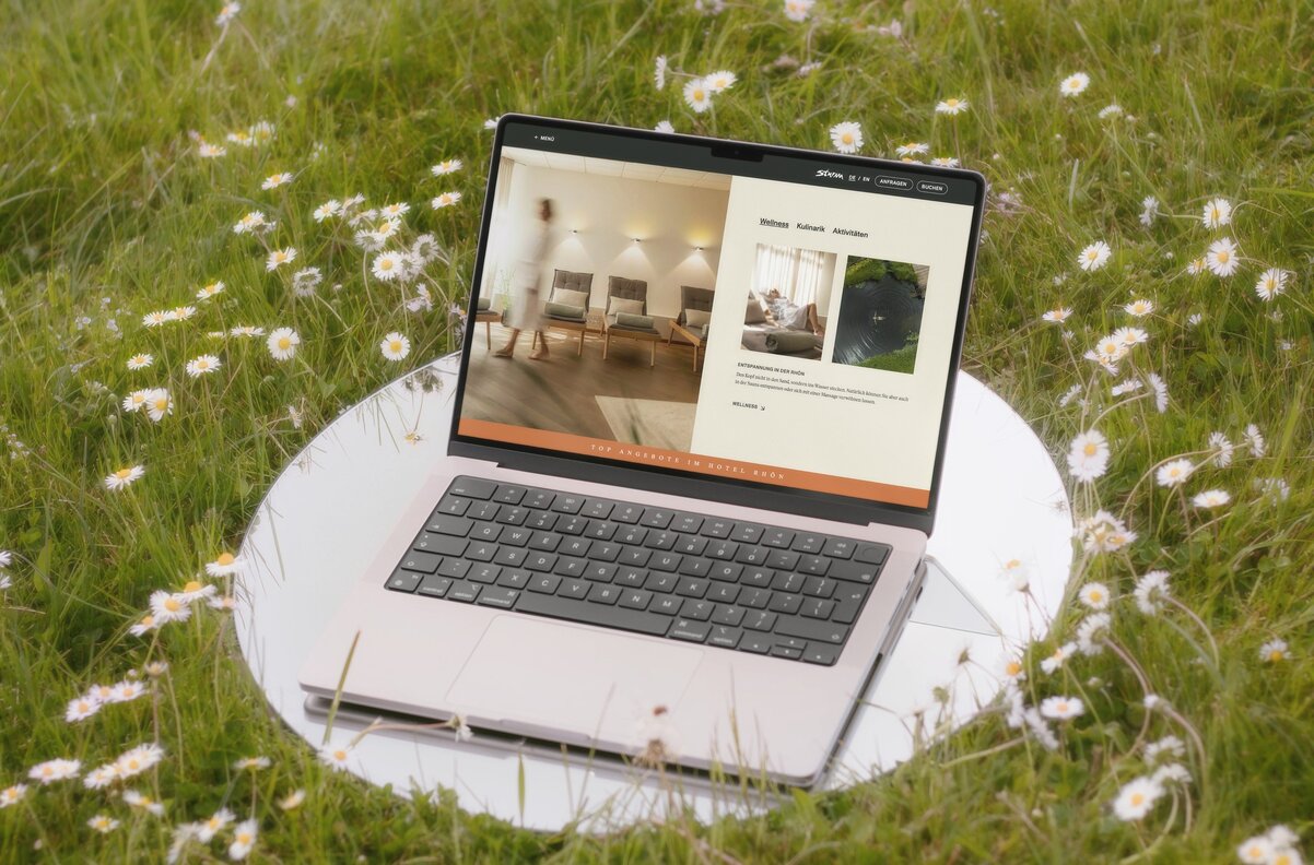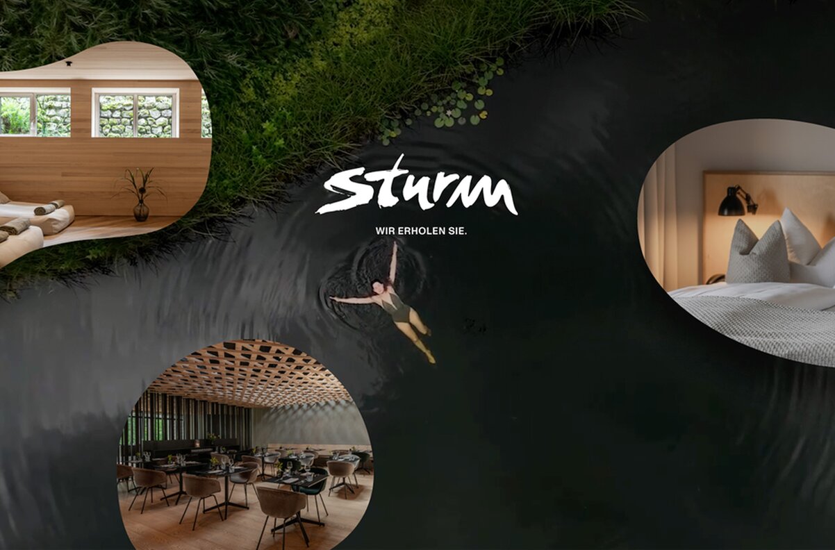 Modern architecture and nature-conscious design merge seamlessly at Hotel Sturm. The balance between contemporary form and natural elements also defines the website’s design.