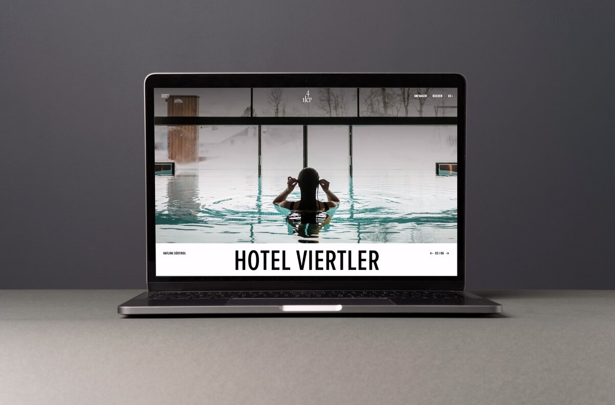 With its 2023 renovation, the former Viertlerhof began a new chapter: transformed from a “small & fine” hotel into Hotel Viertler – a place where modern design and alpine charm coexist in perfect harmony. As the hotel’s marketing agency, we accompanied this evolution with a comprehensive rebranding that highlights its new elegance while preserving its familiar character. The “4” in the logo symbolises both the name and the four core pillars of the house – nature, tranquillity, indulgence, and design. A timeless corporate design, soft nude and grey tones, and natural materials flow through the web design, print, and photoshoots – all reflecting one unified vision: authenticity in its most beautiful form.